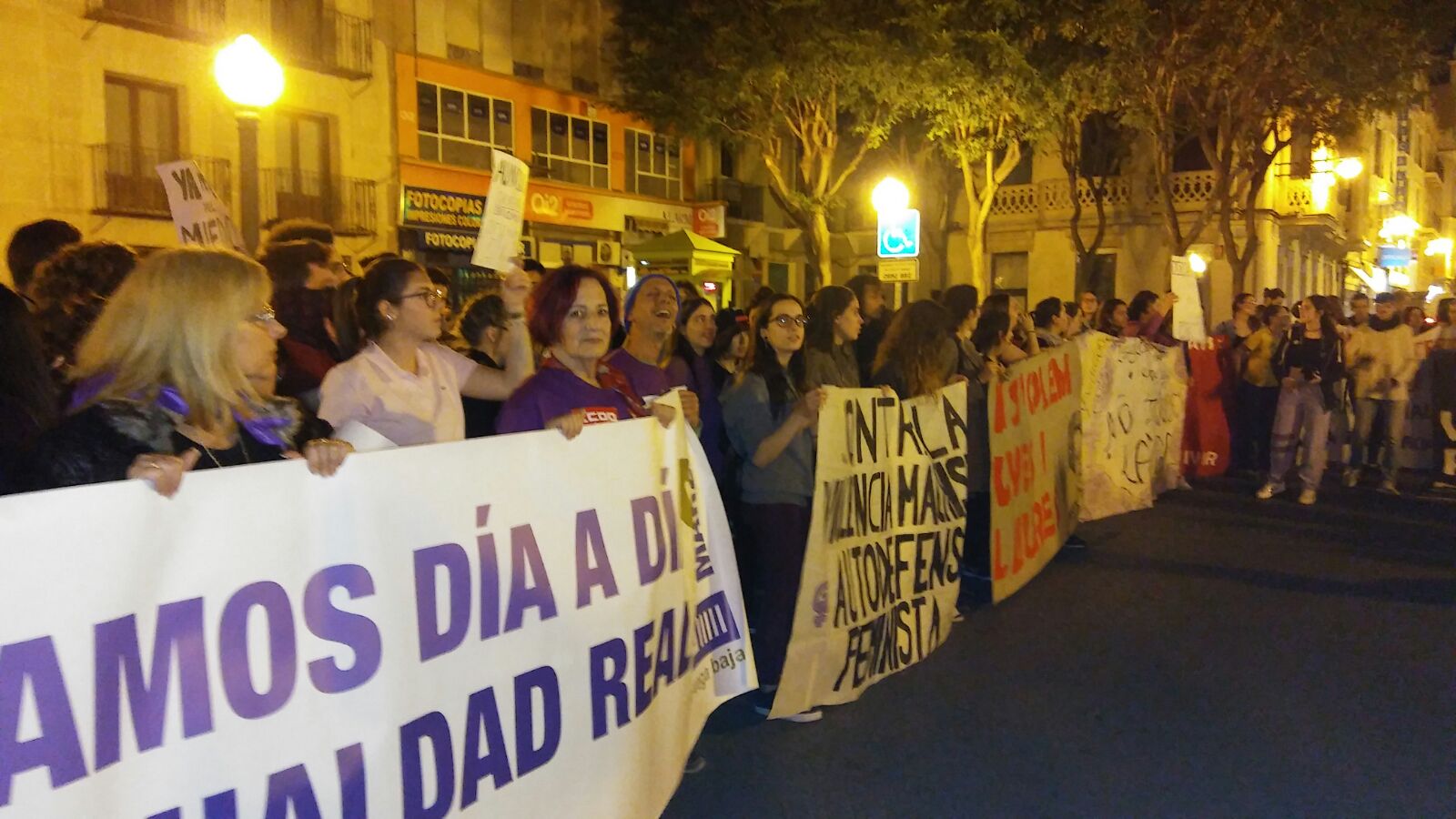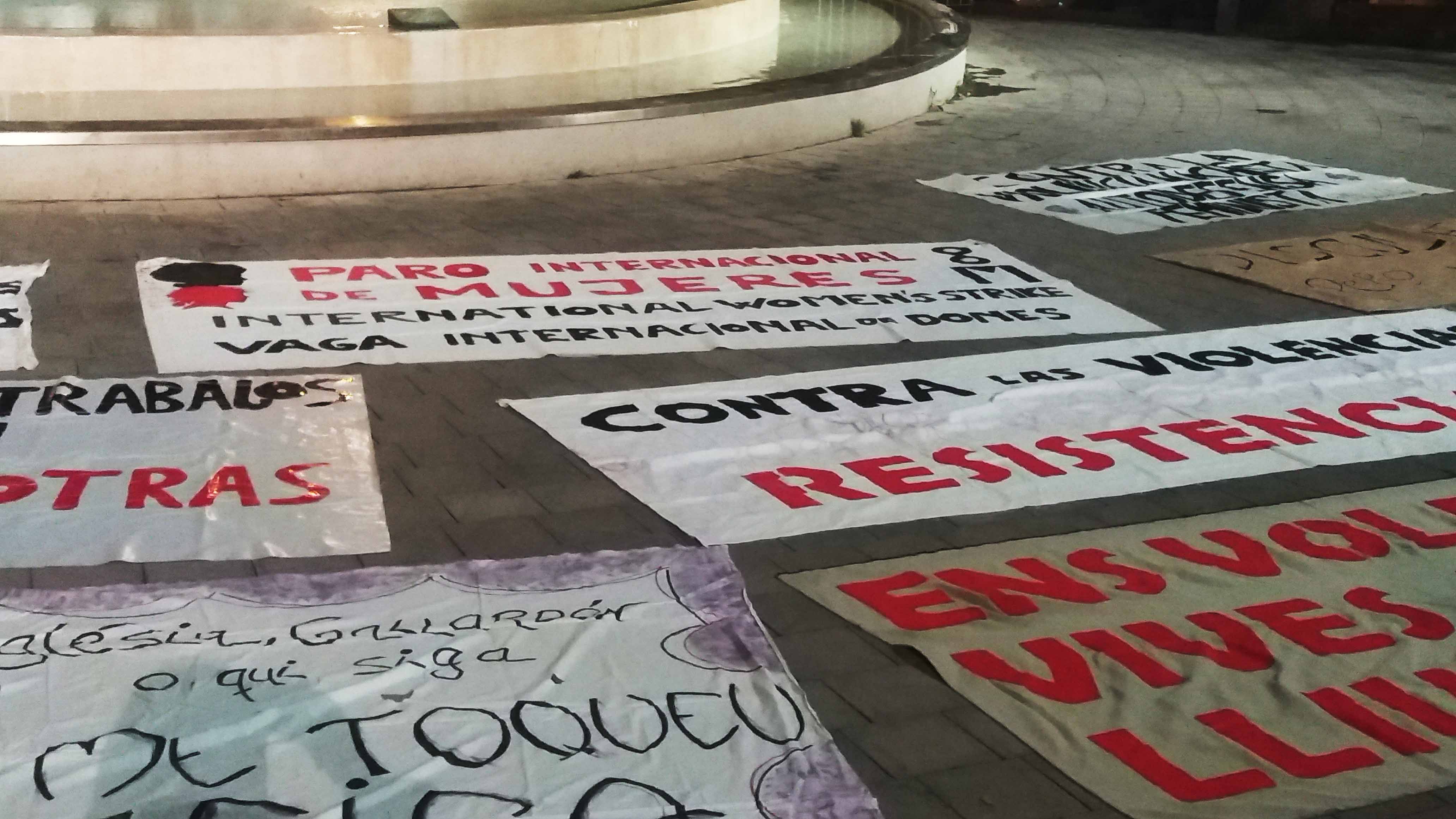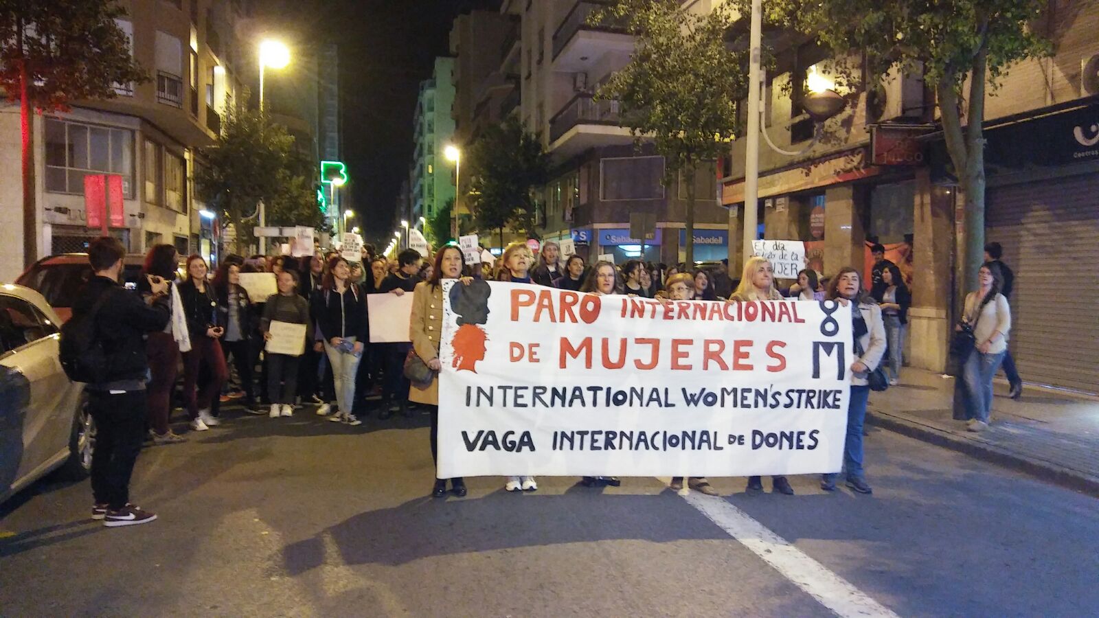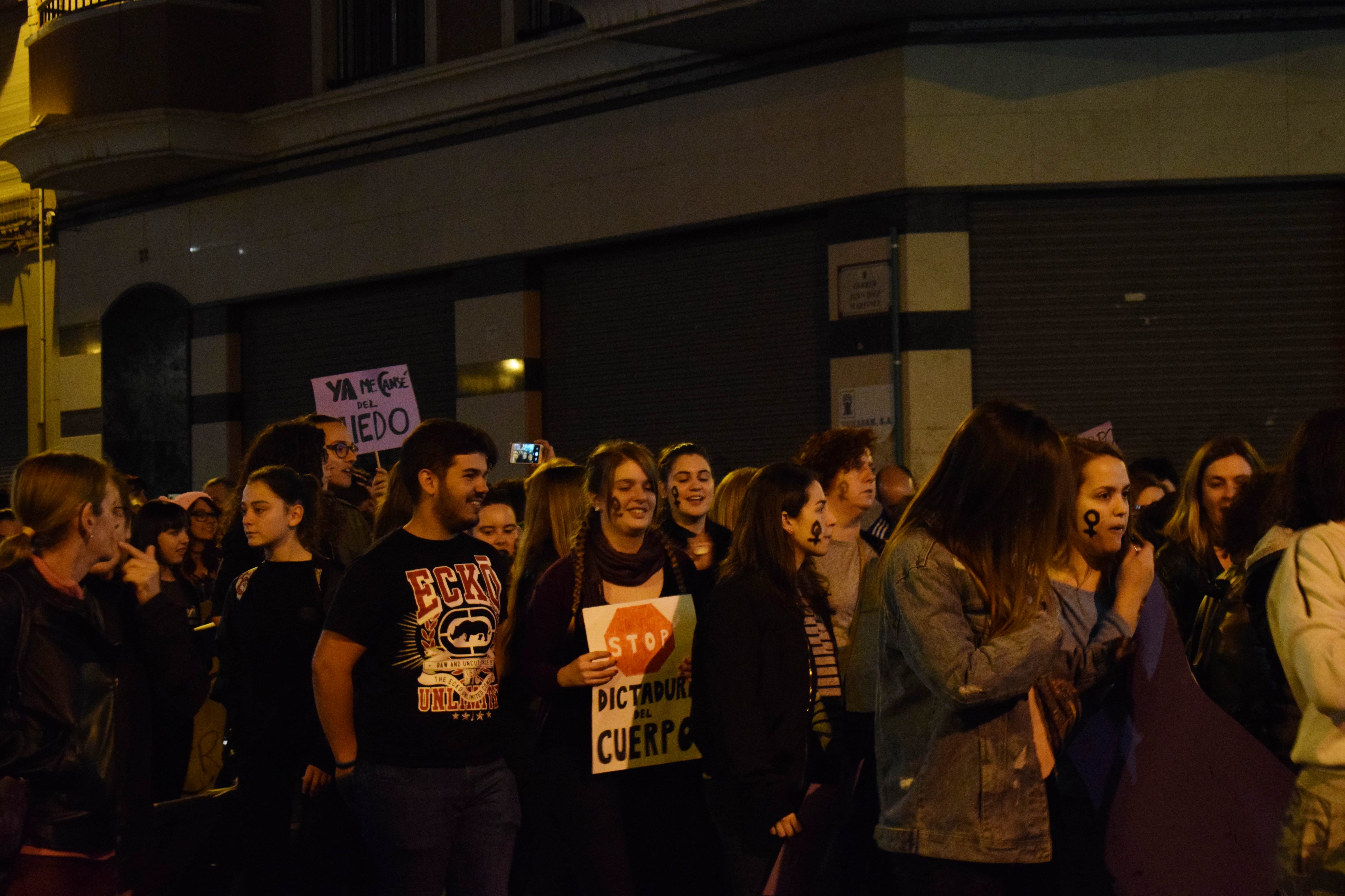 Centenares de mujeres recorrieron las calles de Elche portando pancartas, en las que se podían leer “SI NUESTRAS VIDAS Y TRABAJOS NO VALEN, PRODUCID SIN NOSOTRAS” o “TODA MUJER TIENE DERECHO A SER ELLA MISMA Y A HACER LO QUE ELLA QUIERA”